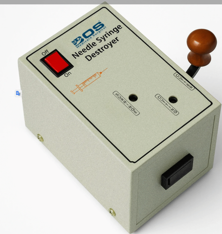 A Manual Needle Destroyer is a medical safety device used to safely destroy used hypodermic needles immediately after injection. It helps prevent needle-stick injuries and reuse of contaminated needles, ensuring safe disposal in hospitals, clinics, and laboratories.