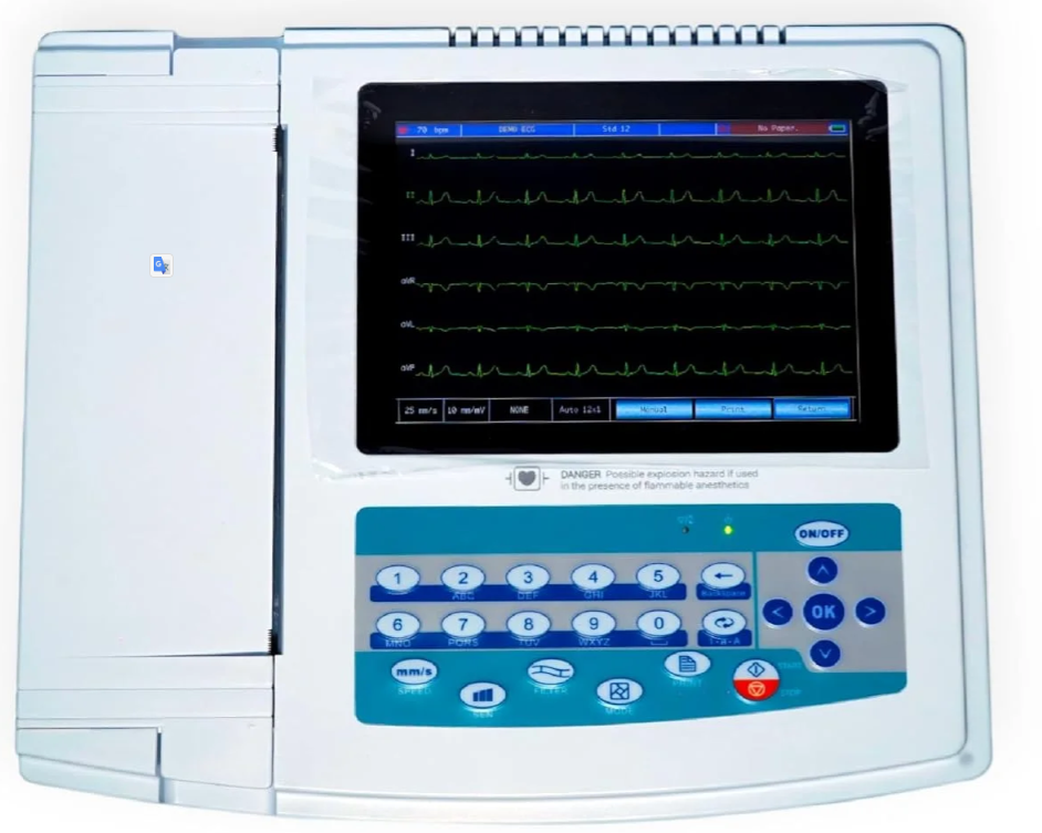 A twelve channel ecg machine i is an advanced medical device used to record the electrical activity of the heart from 12 different leads simultaneously. It provides detailed and accurate information about heart function, helping doctors diagnose cardiac conditions such as arrhythmia, heart attack, and other heart abnormalities.