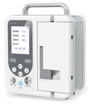 This infusion pump allows healthcare professionals to set the exact volume and flow rate, helping maintain safe and consistent delivery of IV fluids and medications.